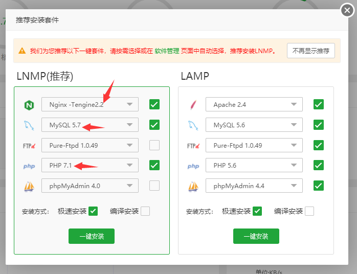 MySQL >= 5.7版本、PHP >= 8.0.2版本。 - 正常情况下,请耐心等待所有软件安装完成,极速安装约30分钟,不同配置的机器,所需时间不定。
