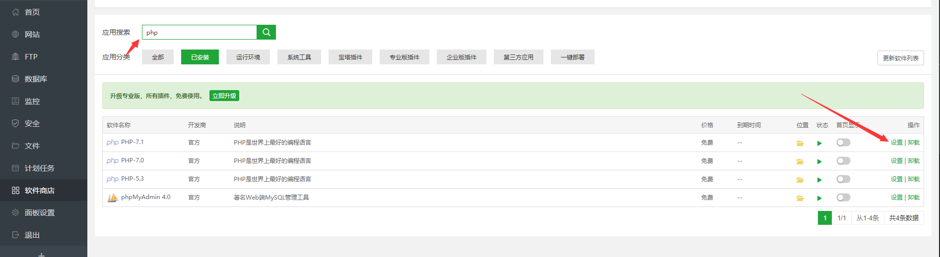 开始此步骤前,需等待宝塔面板左上角的 PHP 安装任务已完成