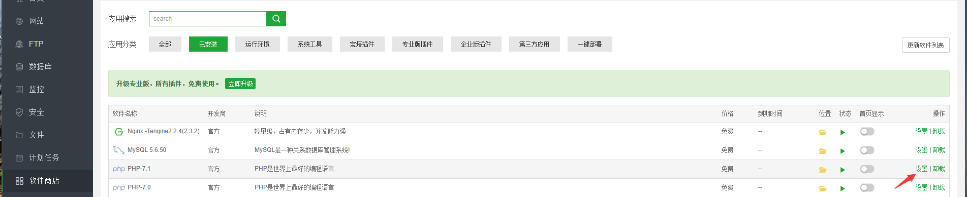1. 打开面板控制台,在左侧菜单中找到软件商店