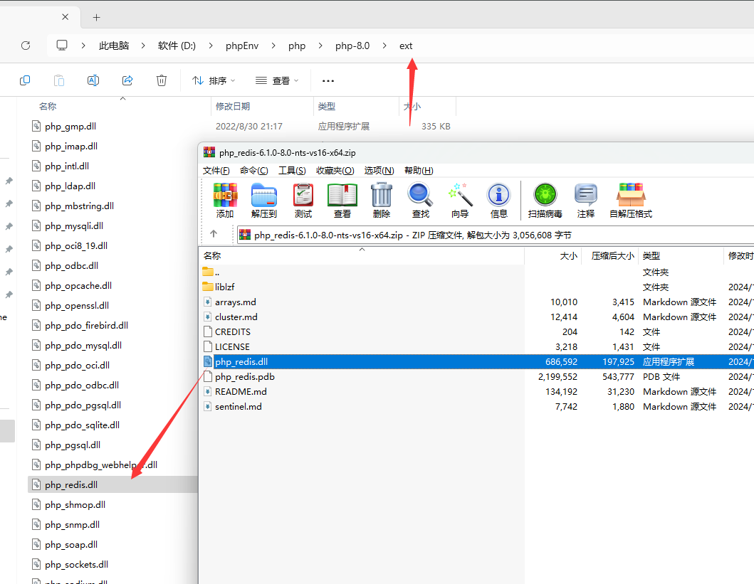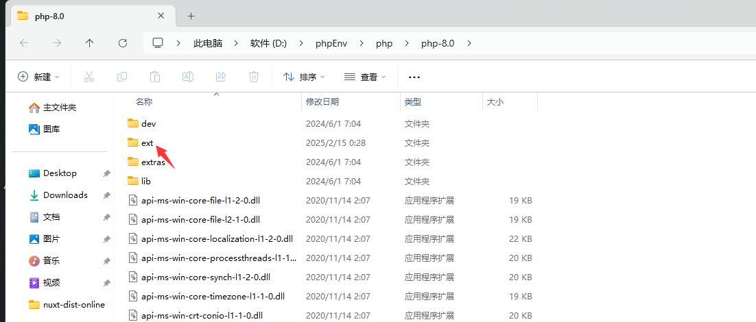 7. 打开 phpenv 对应 php 版本的扩展目录,将扩展文件复制至对应目录内