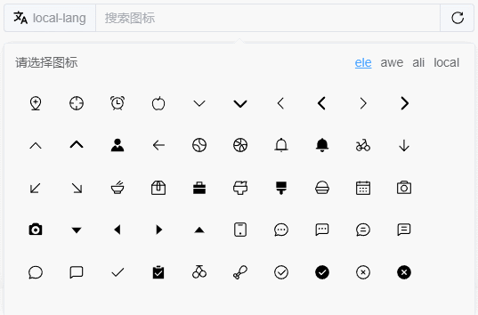 type默认图标类型stringele/awe/ali/localele