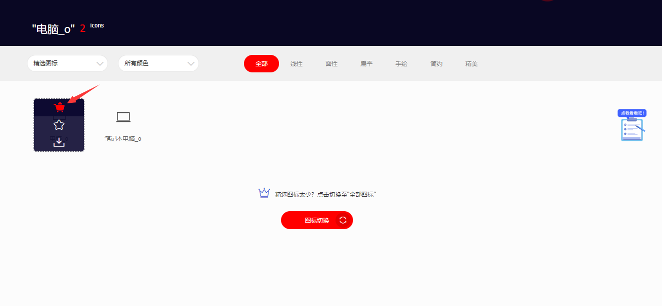 1. 点击iconfont网站右上角的购物车,点击添加至项目,你可以选择创建一个新的项目或加入到已有项目。