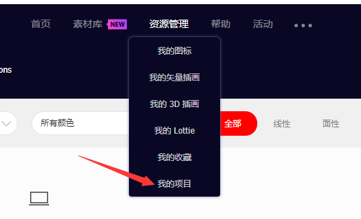 1. 进入iconfont网站顶部的资源管理->我的项目内